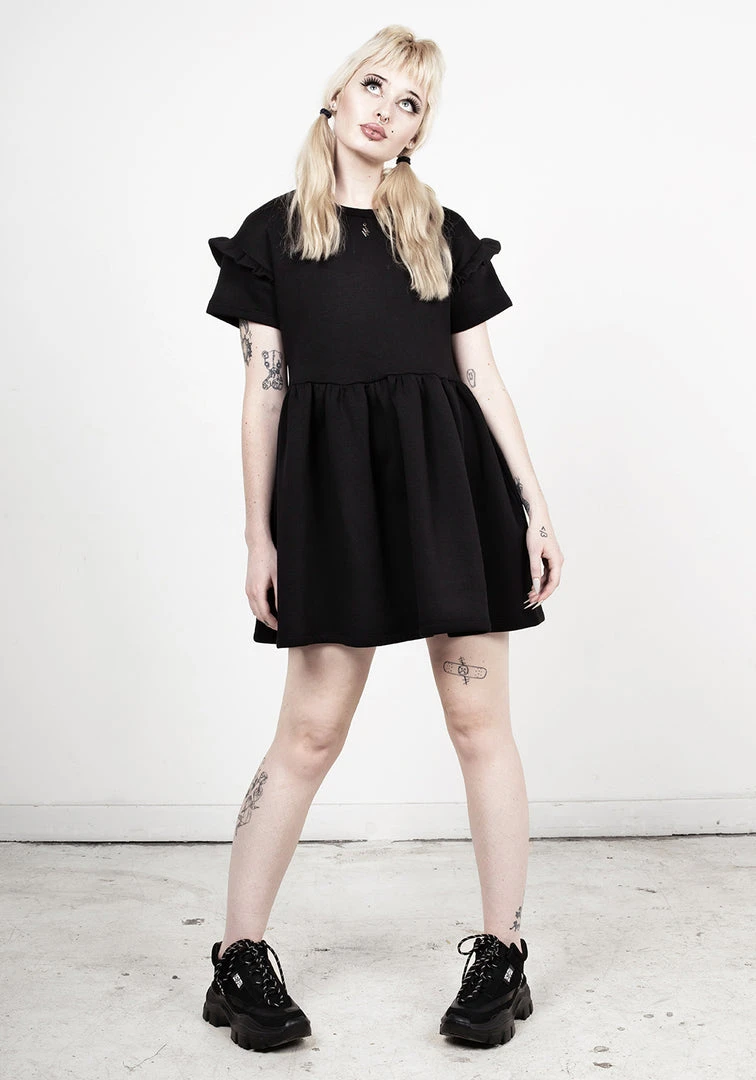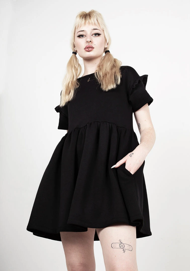 โง Solid black skater dress with frill sleeves