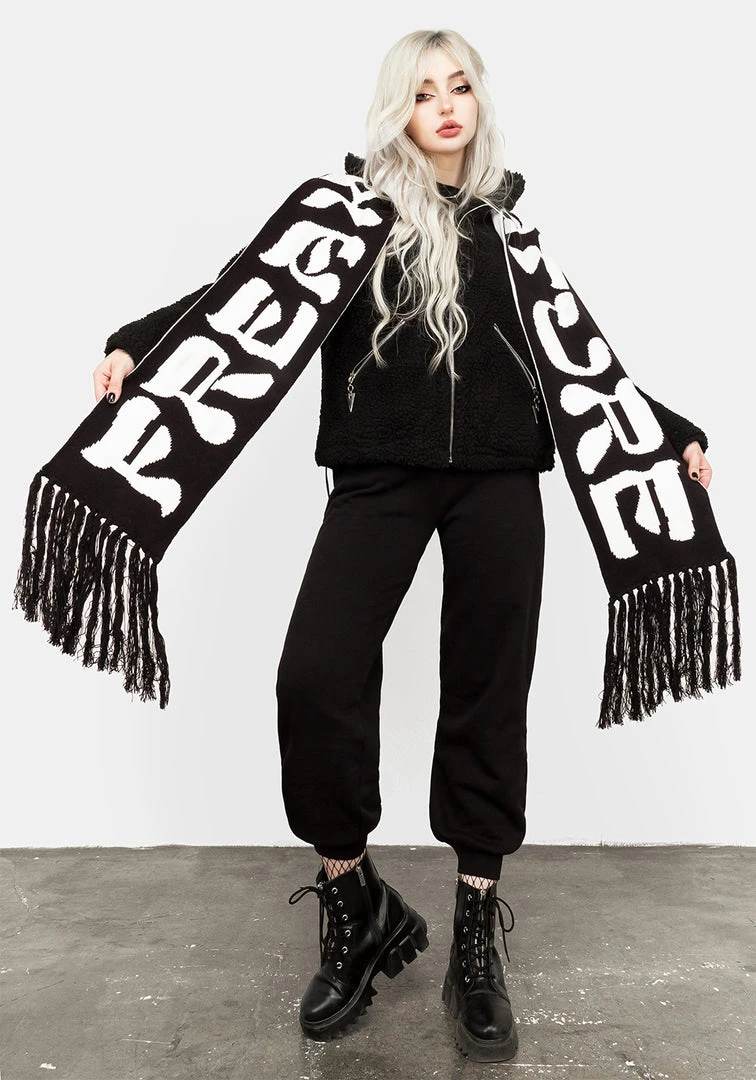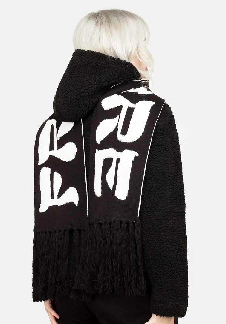 โ Chunky black & white football-style scarf