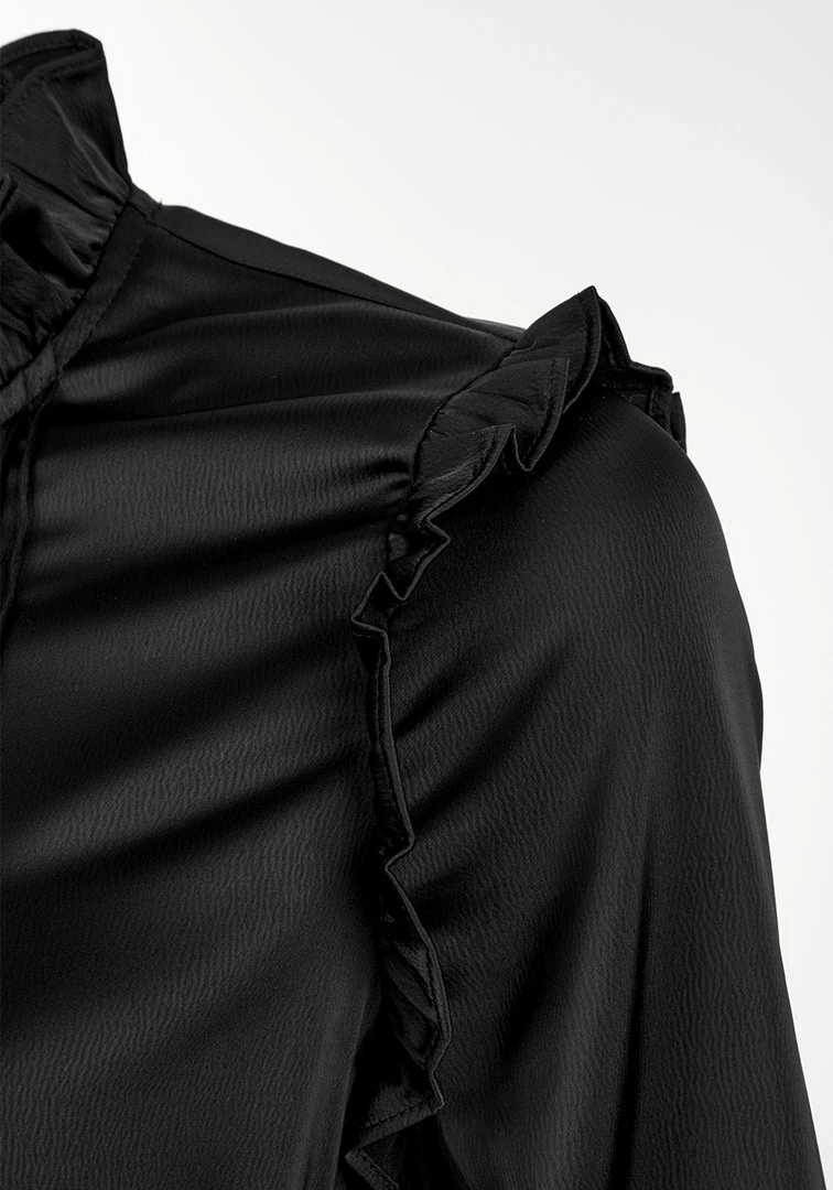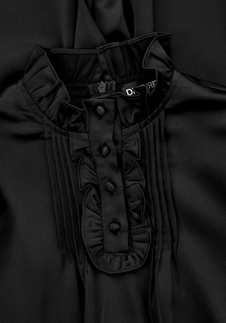 โฆ Ruffled shoulders cast Victoriana charm