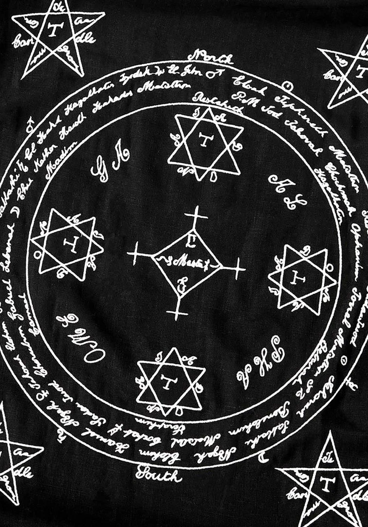 – White sigils embroidered on front chest, front right hem, right sleeve and back of robe include the Seals of Soloman & Gaap (inverted)