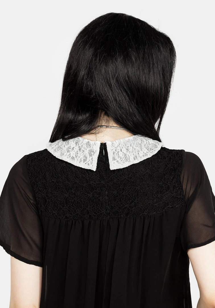 ❦ Contrast lace collar in white