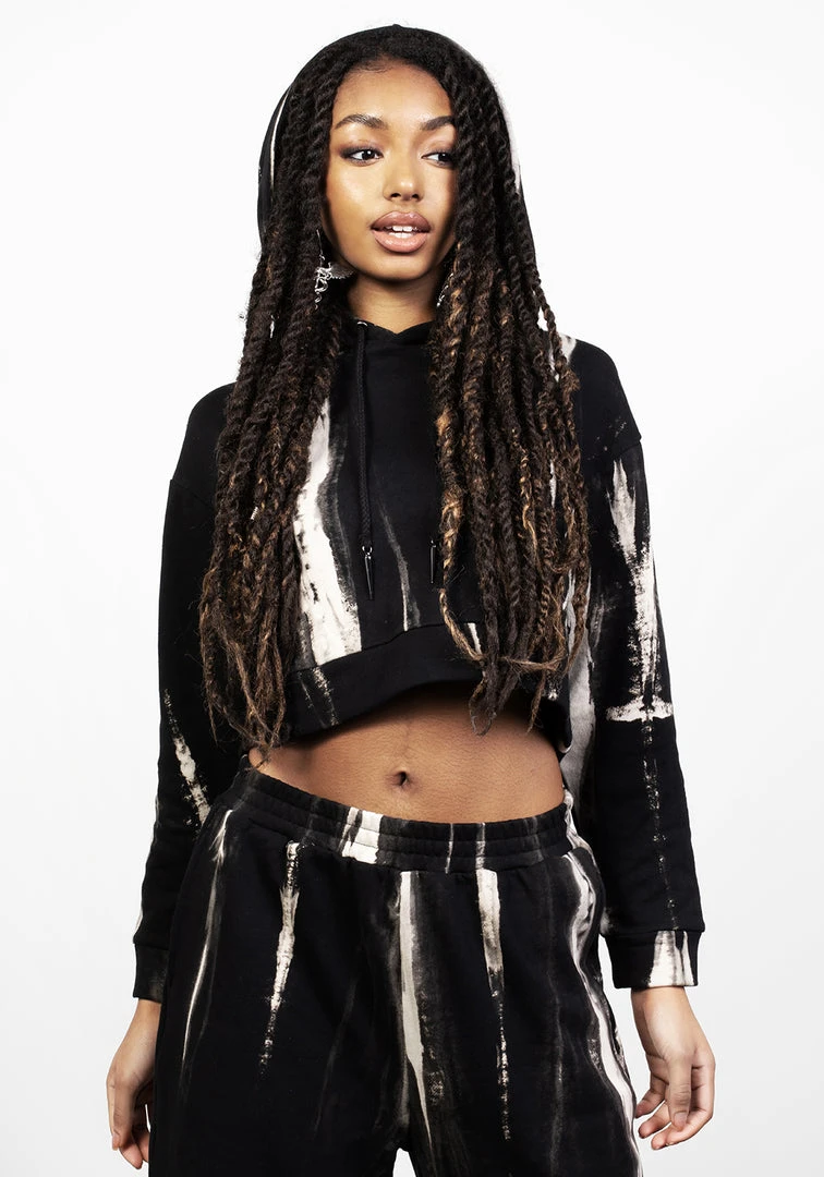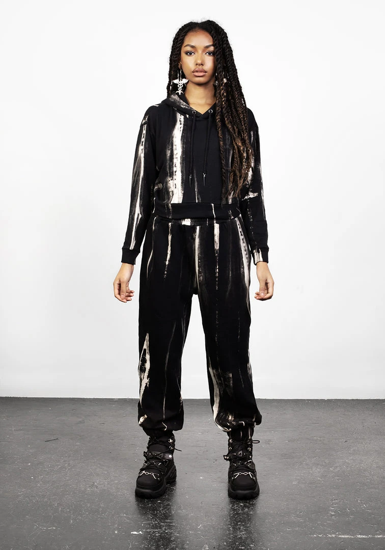 โฅ All-over stripe tie-dye print in grey, black & white (non-stretch fabrication)
