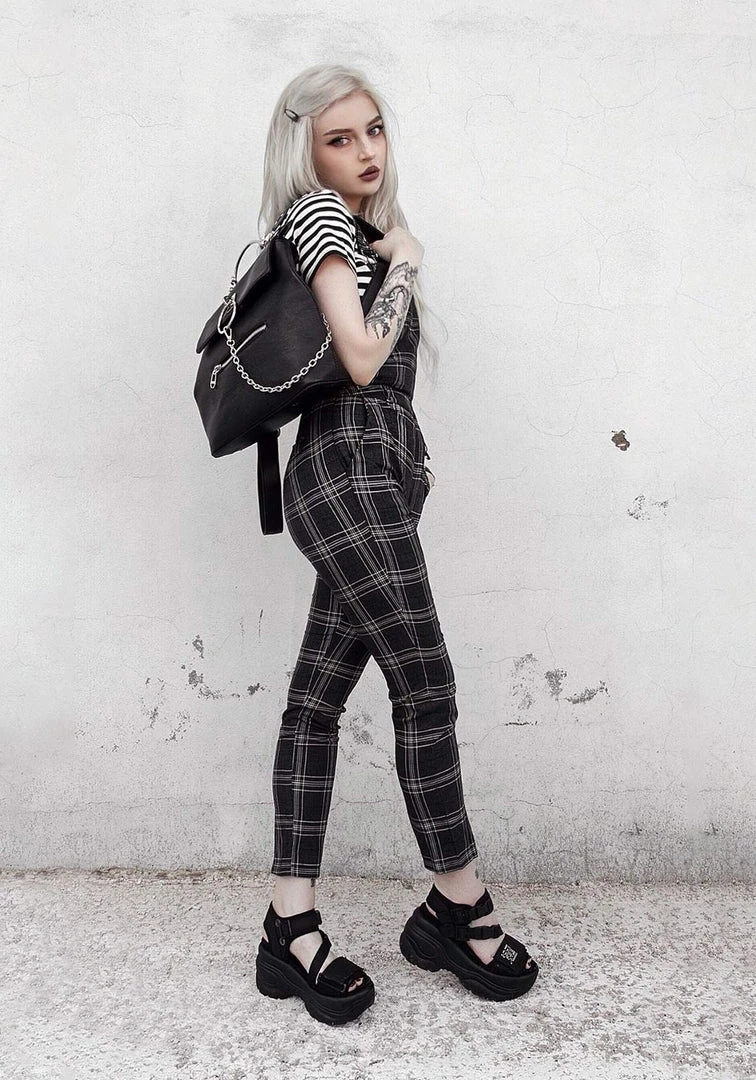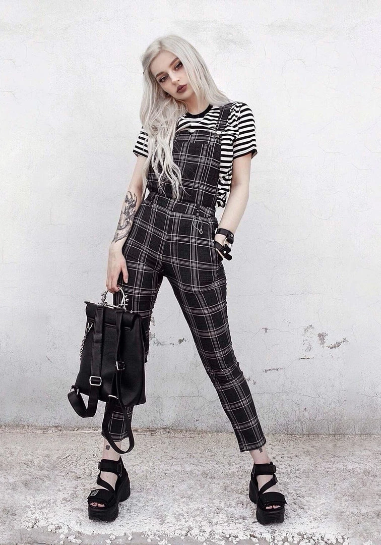 》Fitted, straight leg check dungarees