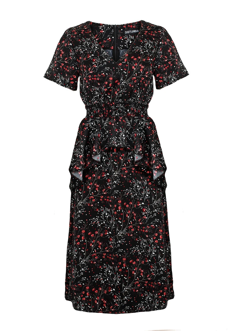 ✦ Black V-neck short-sleeved midi dress