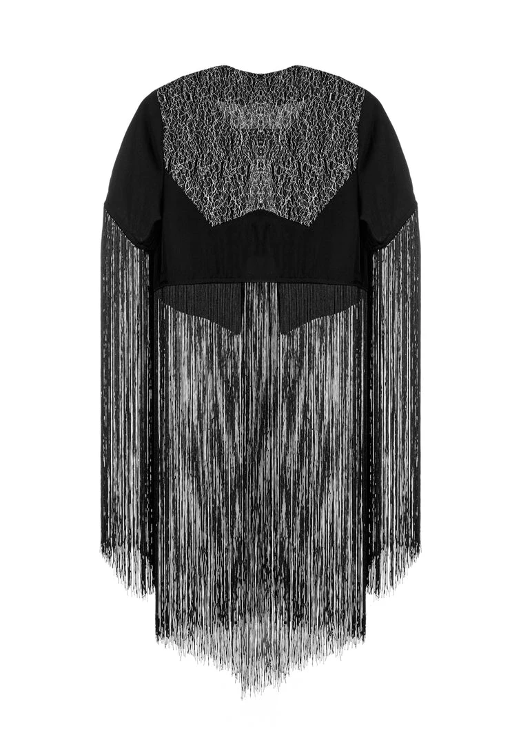 ✦ Fringed hems on short sleeves and cropped waistband flow with your every move