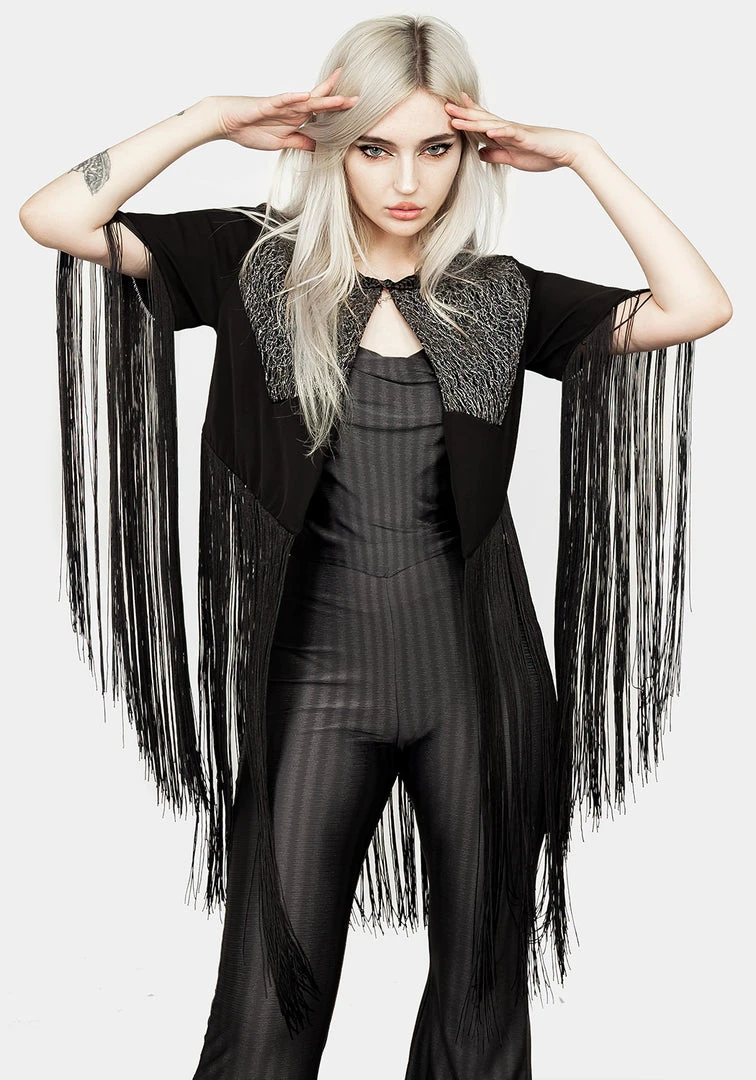 ✦ Classic black main fabric with silver spider thread contrasting panels